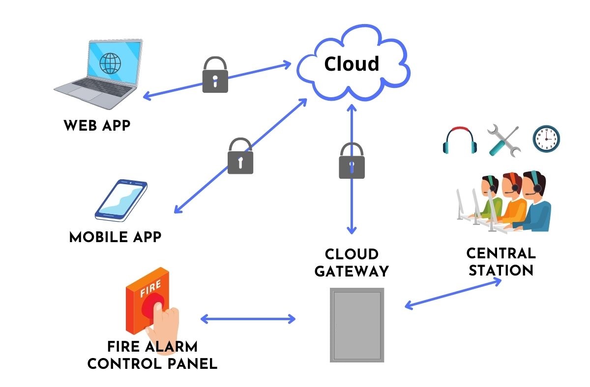 火灾发生的初期是灭火或做决策的黄金时机,火灾警报发生时报警信息的即时性与完整性至关重要。随著物联网技术及基础建设愈发成熟,火灾报警控制主机(FACP,Fire Alarm Control Panel)结合云端通信网关产品,透过云端服务可让平台服务商或安防管理人员直接用手机或是电脑屏幕清楚掌握所有火灾侦测装置的状况, 即时侦测出是否有故障或安排检查,以确保火灾发生时,侦测装置能正常运作并立即发送警报给相关人员,以便在第一时间做出反应,降低灾损。
