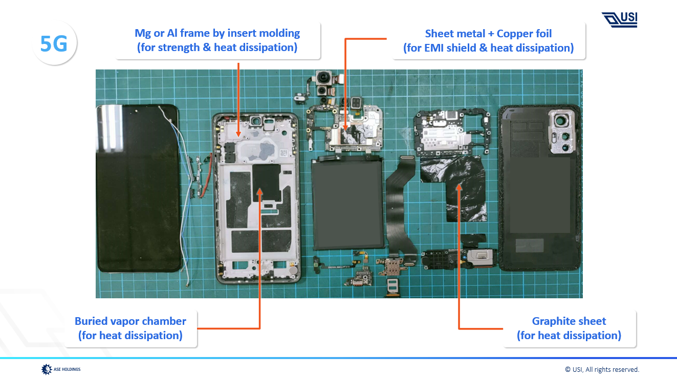 如上图可见,5G产品需运用更先进的散热技术,如Vapor Chamber,同时也必须加上几项散热方案来确保产品的稳定性: